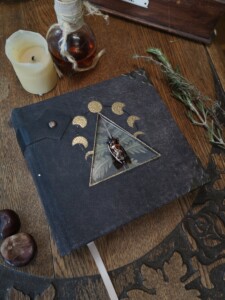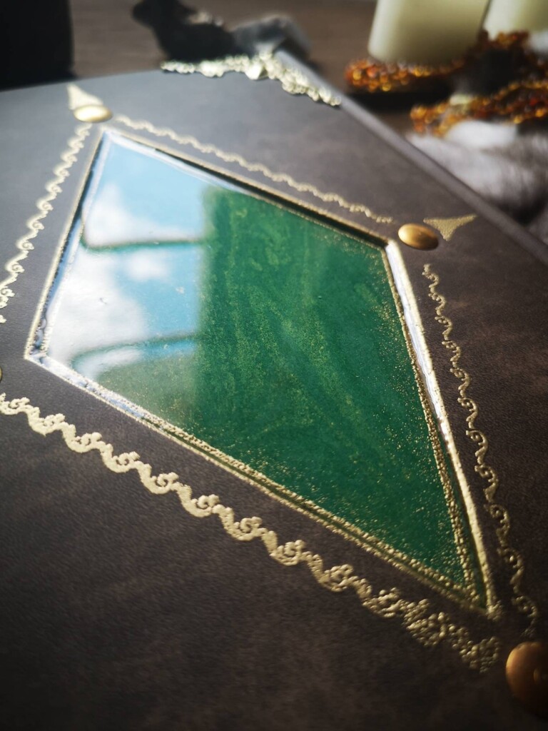Hier findest du Journale, Grimoires und Erinnerungsbücher, die in Leder atmen, in Blattmetall schimmern und mit Farbe, Reliefs oder Harz zum Einzelstück werden. Jedes Buch entsteht in Ruhe, Schicht für Schicht – ein Unikat, das dich lange begleitet.