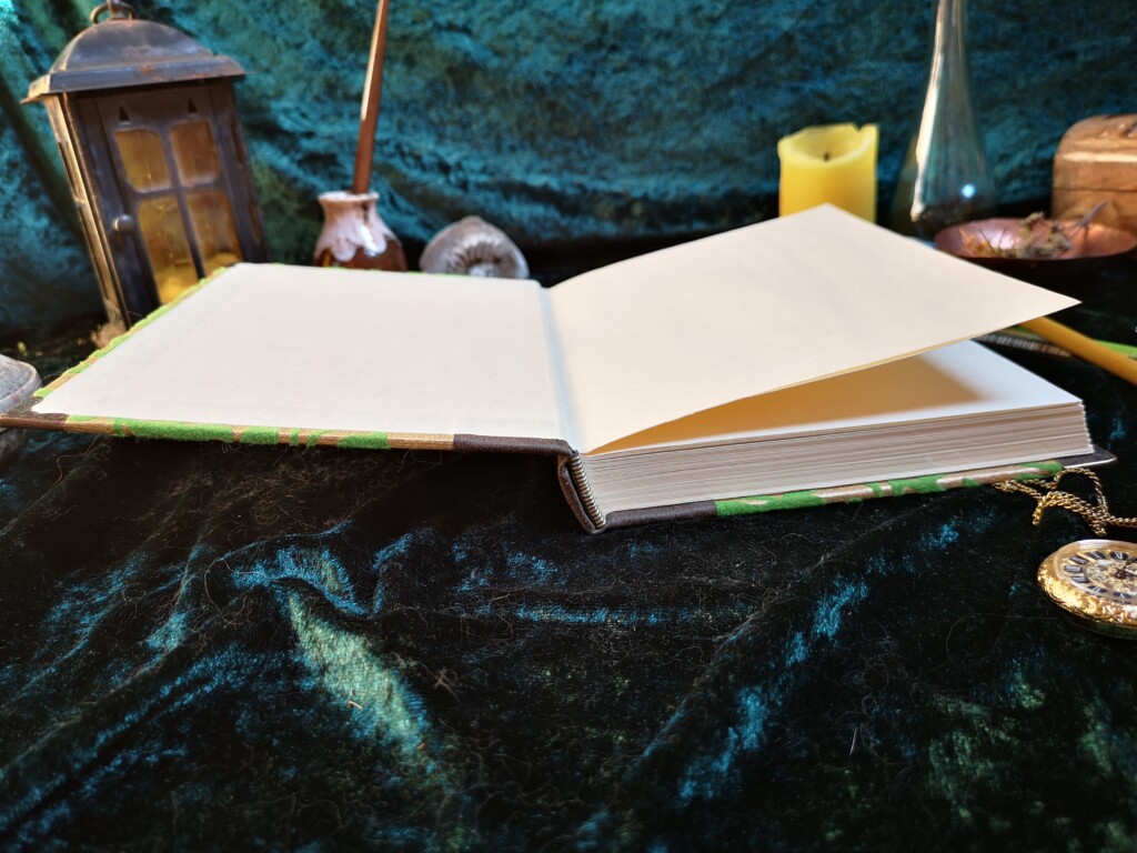 - Flachliegendes Buch: Durch die Fadenheftung kann das Buch flach aufgeschlagen werden, was das Lesen und Schreiben erleichtert.