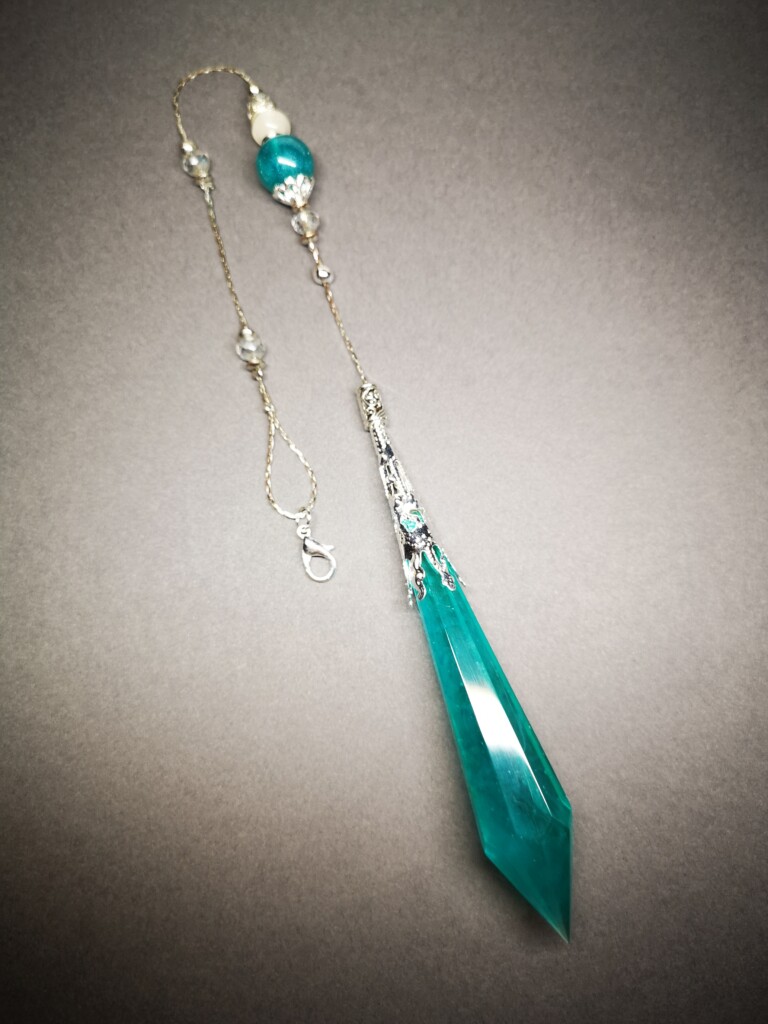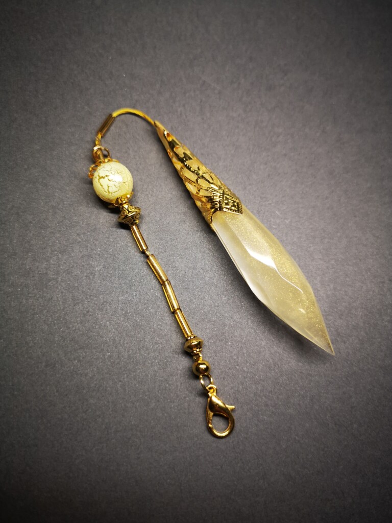 Eigentlich halte ich nicht viel von Plastik – doch das Arbeiten mit Epoxidharz ist eine Ausnahme, die süchtig macht. Wenn flüssiges Harz mit Pigmenten, Metallpulver oder Leuchtfarben reagiert, entsteht jedes Mal ein kleines Wunder. Besonders gern gieße ich damit meine eigenen Kristalle – oft mit nachtleuchtendem Effekt, der die Bücher im Dunkeln sanft schimmern lässt.