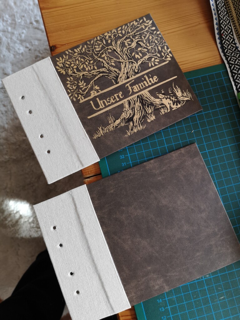 Endlich komme ich dazu! Ich möchte euch mein neuestes Fotoalbum zeigen, das ich mit viel Liebe und Sorgfalt hergestellt habe. Es hat ein wunderschönes Cover überzogen mit Furnier (ich denke es ist Pflaumenbaum, bitte sagt in den Kommentaren bescheid falls es doch ein anderes Holz ist) und ist mit einer praktischen Ringbindung versehen. Um dem Album eine persönliche Note zu verleihen, habe ich mit Acrylfarben eine zarte Edelweiß-Blume darauf gemalt, da das die thematisch passende Blume zur Hochzeit war. Den Namen des Brautpaares habe ich mit feinem goldenen Blattmetall hervorgehoben. Im Inneren findet ihr eine Mischung aus cremefarbenem und weinrotem Fotokarton, die eine warme und einladende Atmosphäre schaffen. Ich bin wirklich dankbar für die Möglichkeit, solch ein einzigartiges Album zu gestalten, das die wertvollen Erinnerungen des Brautpaares bewahren wird. Lasst mich wissen, wie es euch gefällt!